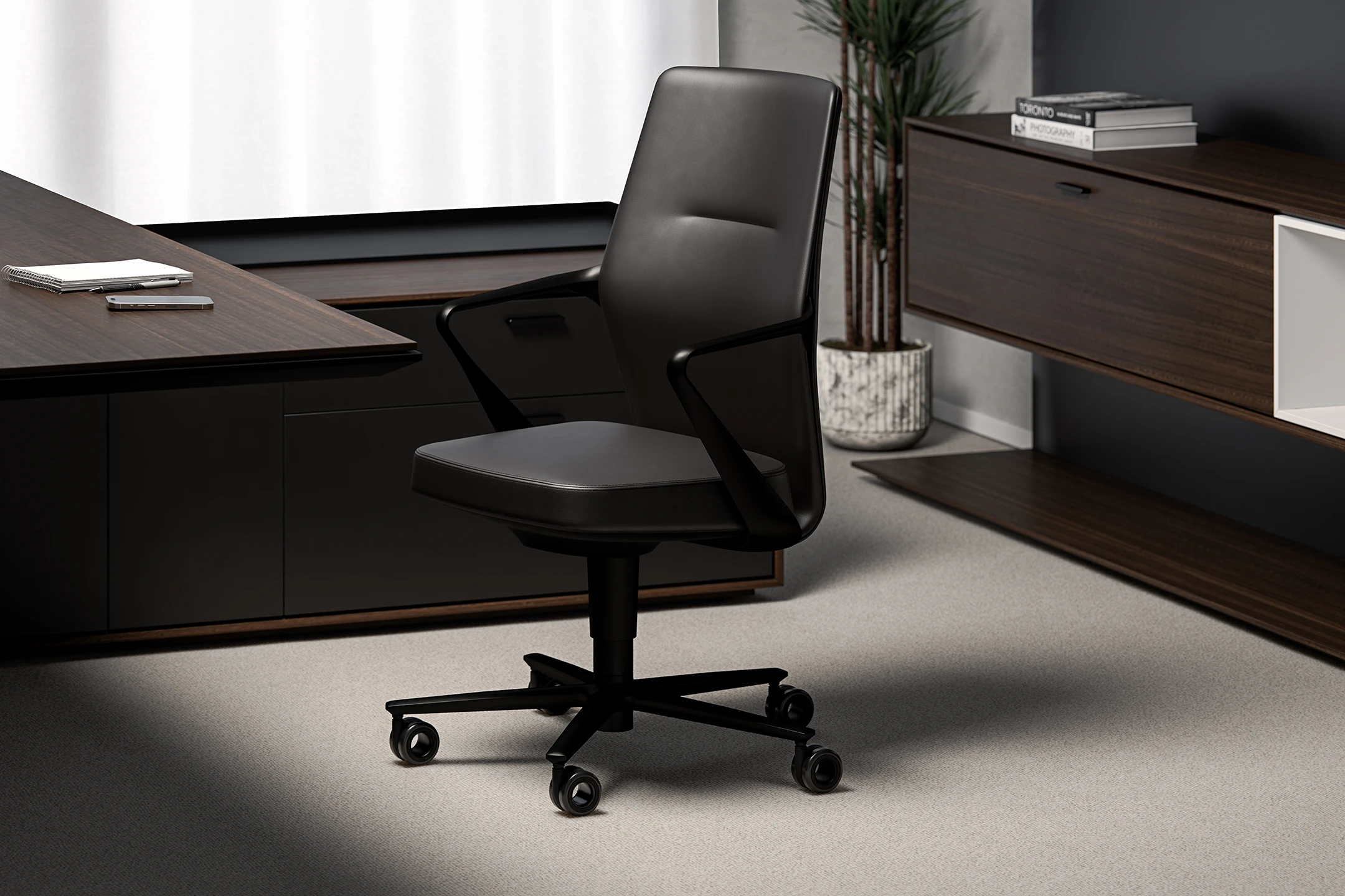 FERRA is an executive conference chair that merges timeless design with precision craftsmanship. Designed to deliver refined beauty and elevated comfort to the modern meeting space.